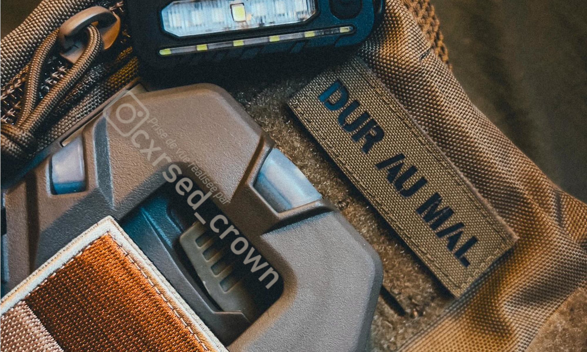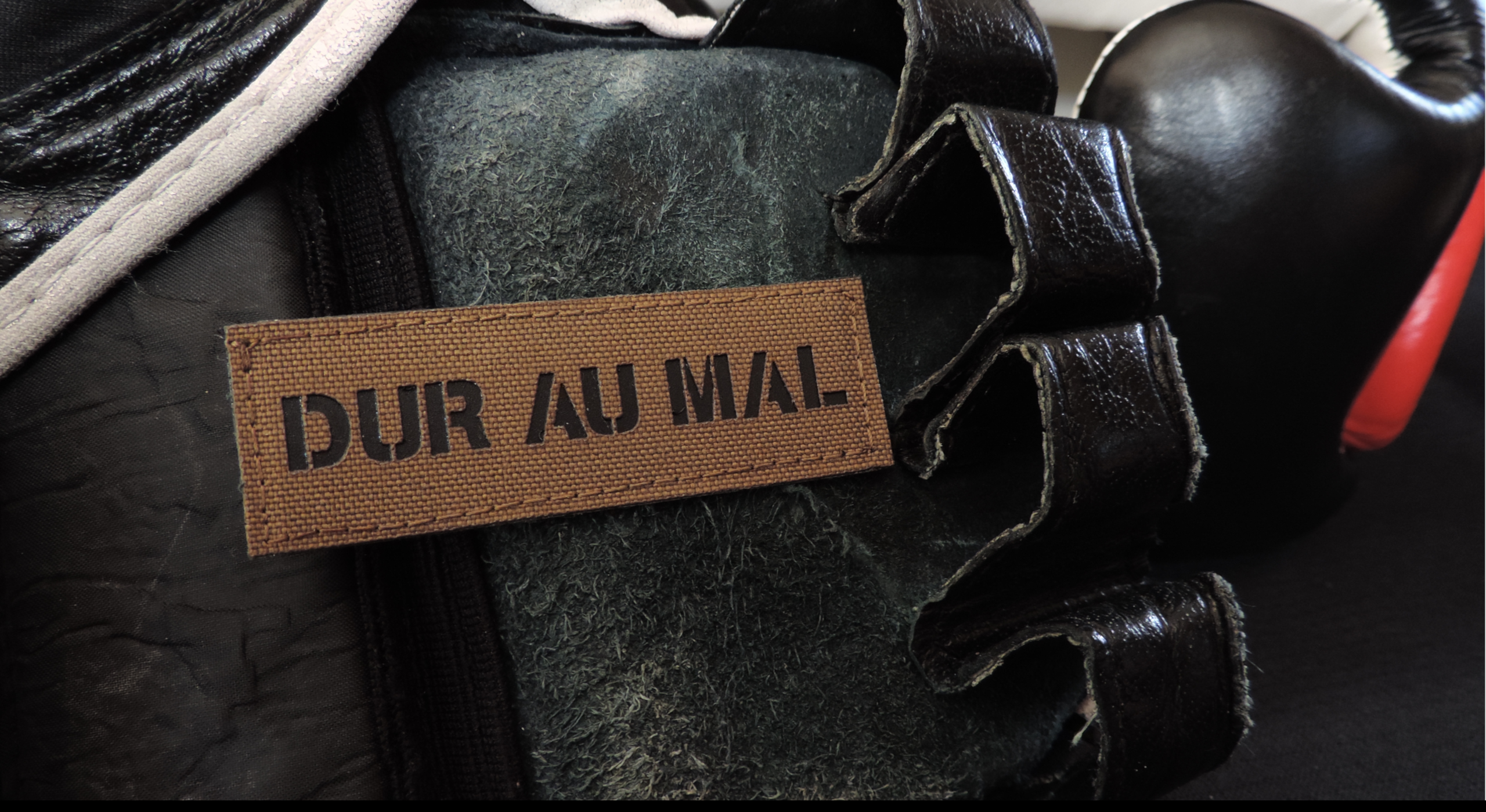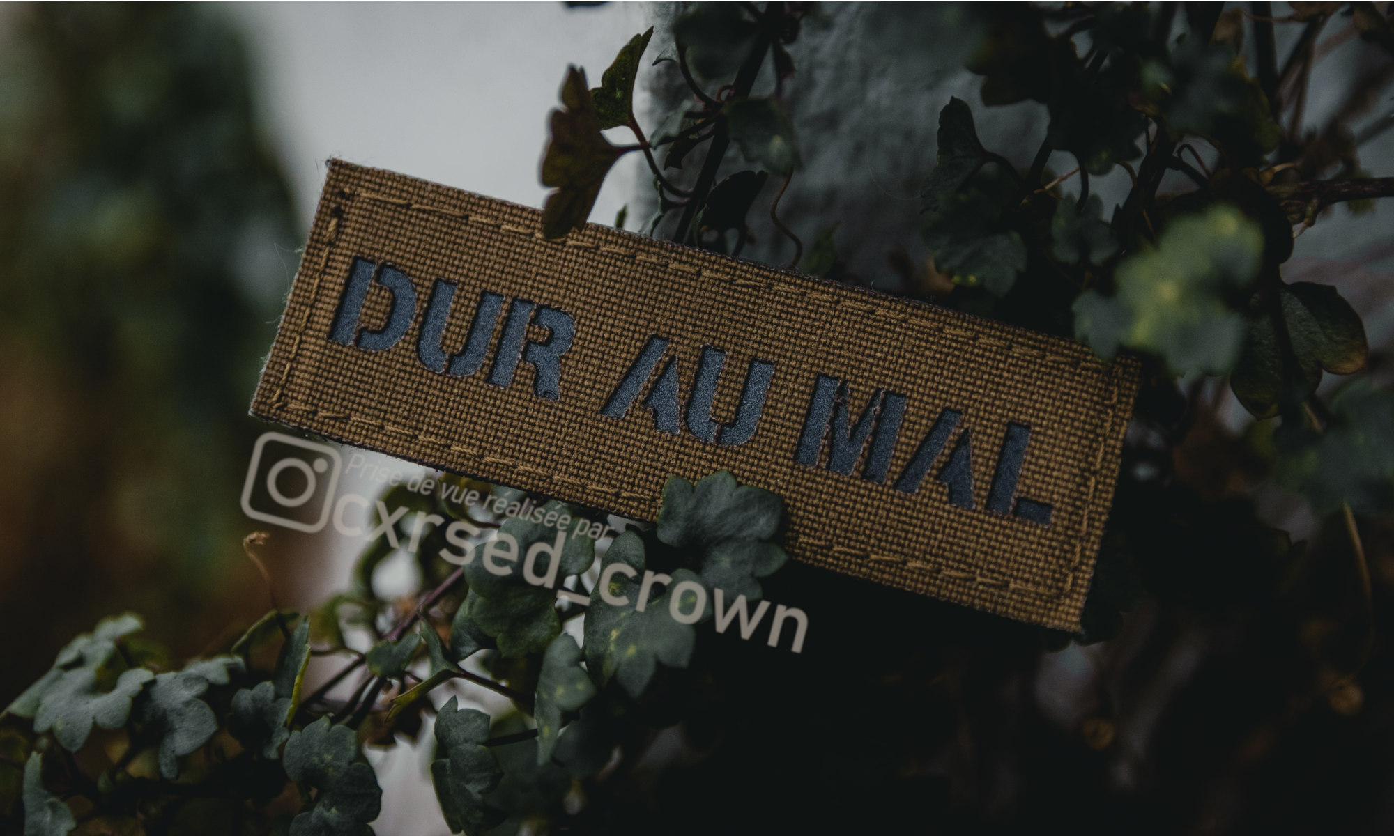 La maxime DUR AU MAL se décline en écusson pour vous suivre sur vos terrains d'aventures et d'entrainements.