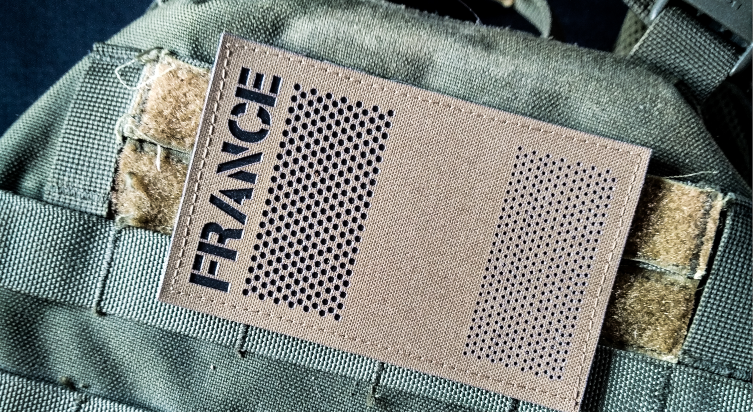 - Tissus: Cordura 500 Deniers* découpé au laser; coloris Olive ou Coyote.