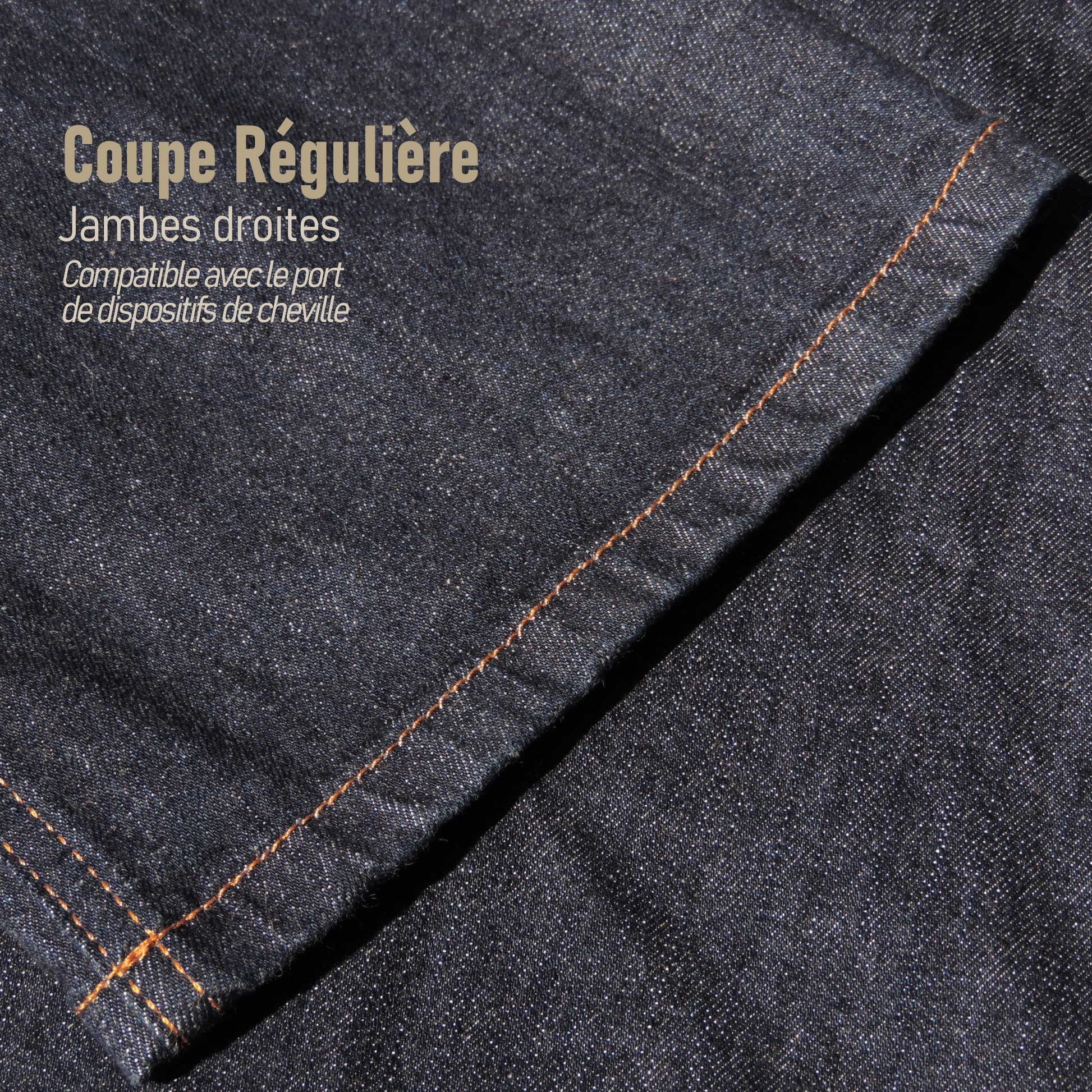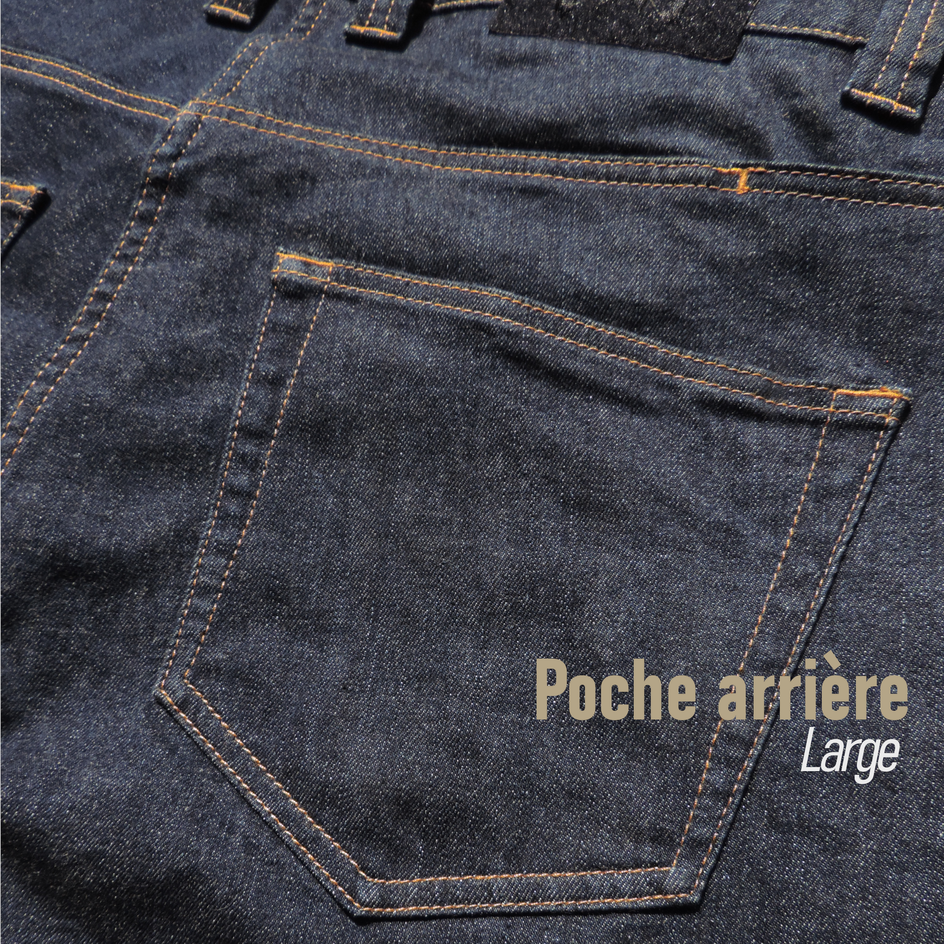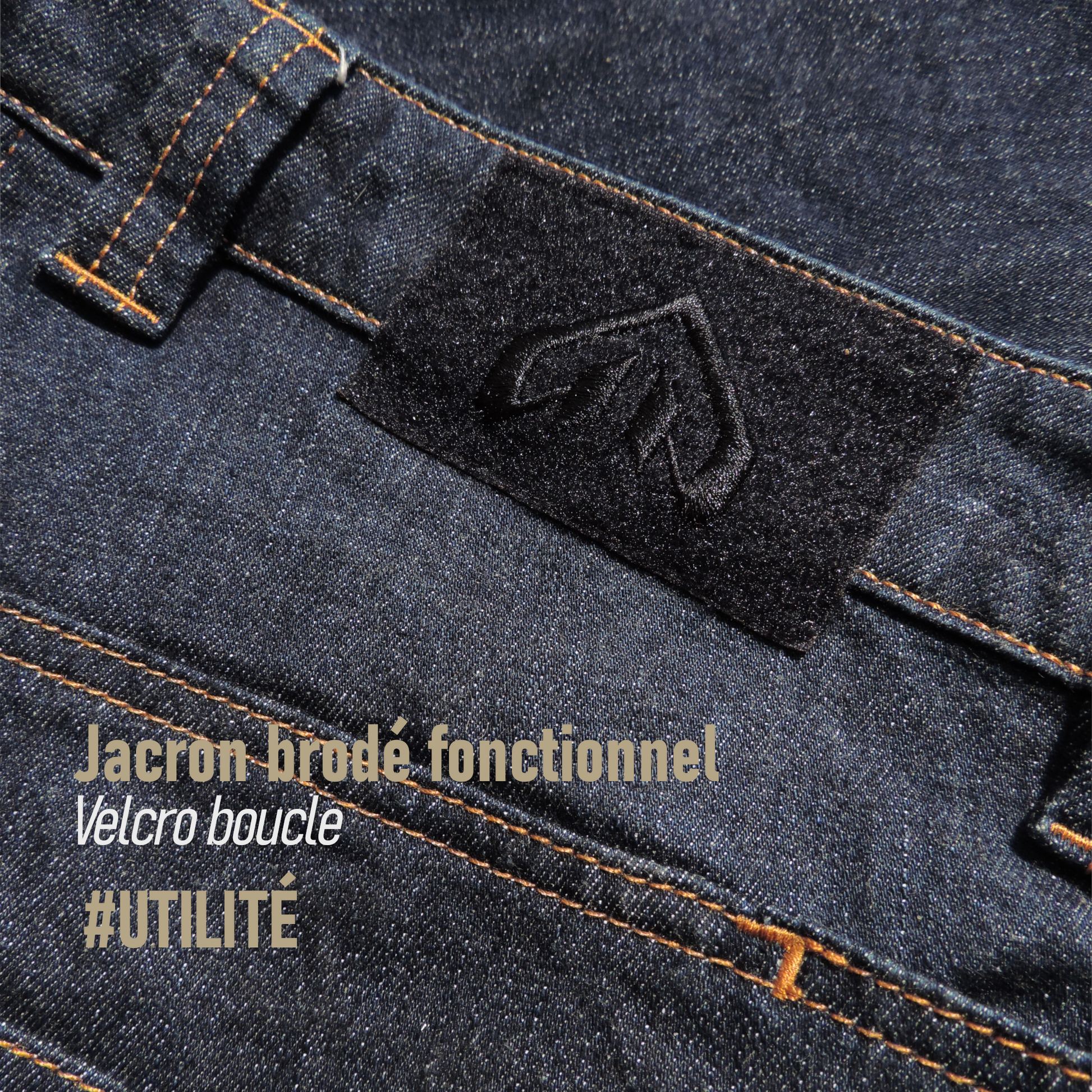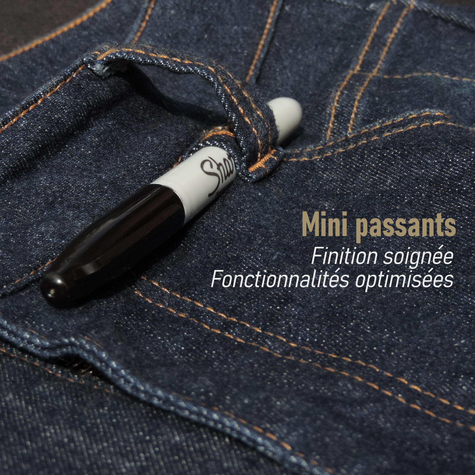 Construction: Fermeture par bouton Ă riveter et Zip YKK Auto lock. Points d'arrĂȘts / Bartaks pour remplacer les rivets en mĂ©tal. SurpiqĂ»res Ă double aiguilles. 6 passants de ceinture larges (20mm).