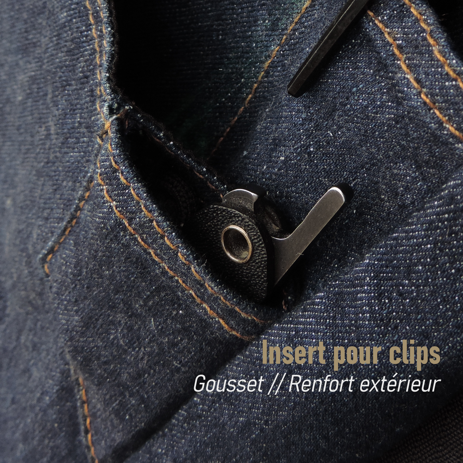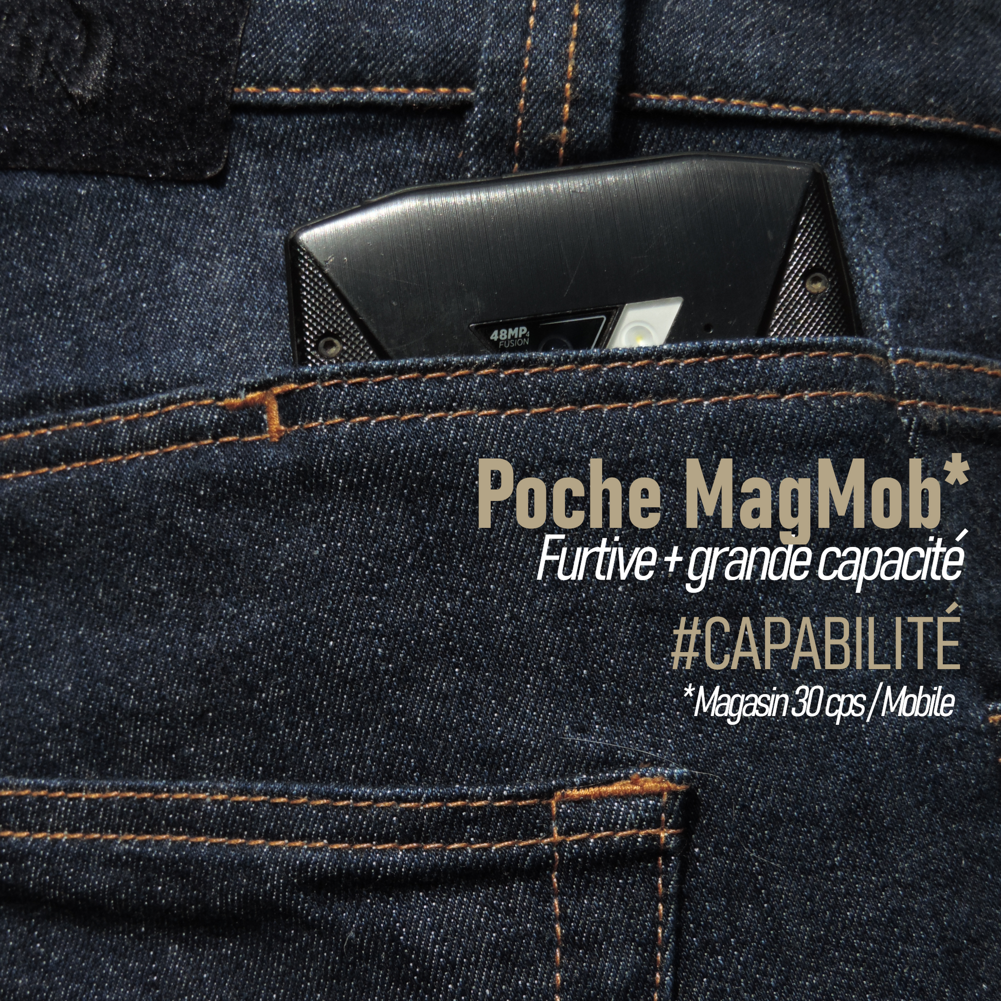 12 poches: 2 poches cavaliĂšres, 4 poches tickets, 2 mini poches renfort de clip, 2 poches MagMob', 2 poches arriĂšres.