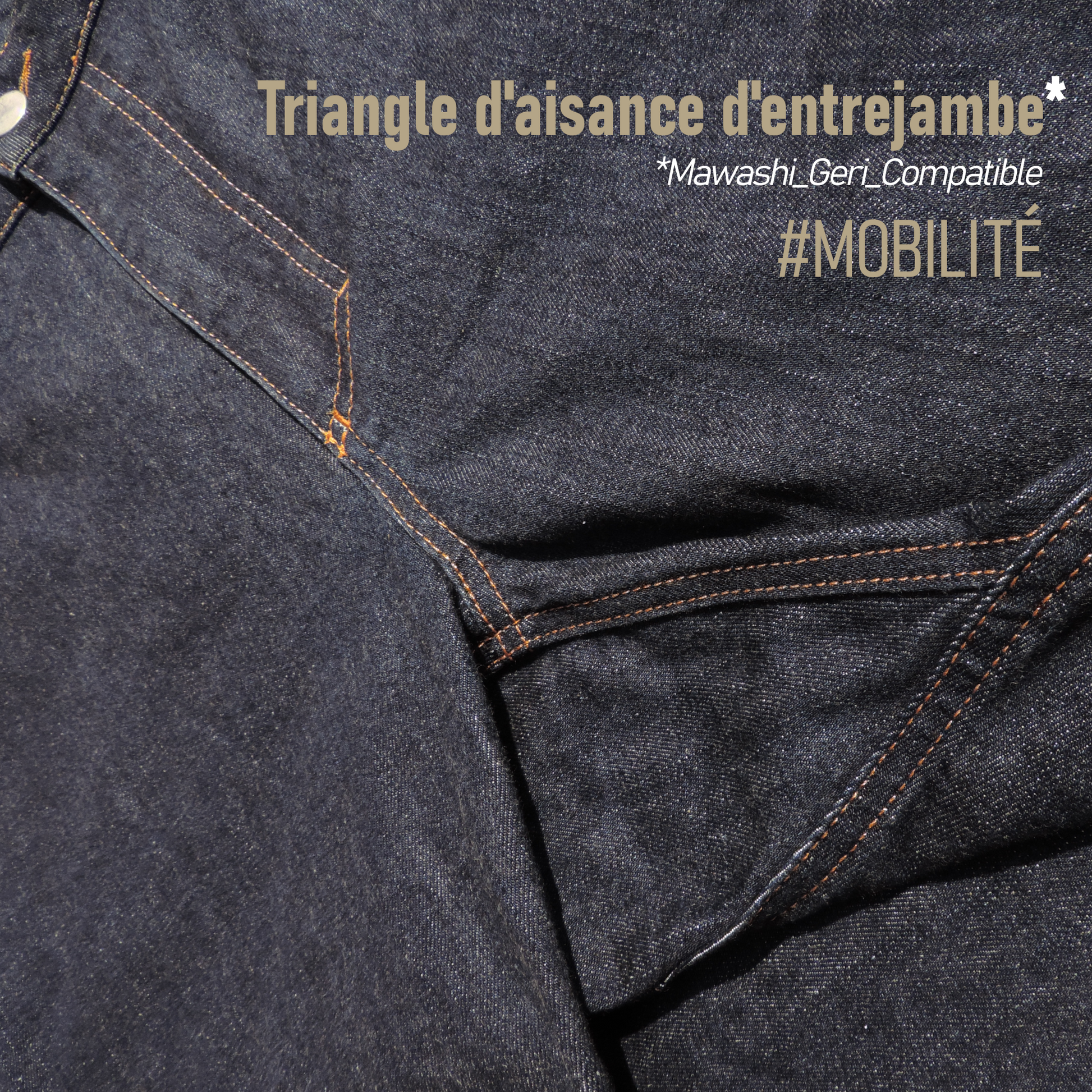 Mobilité: Triangle d'aisance à l'entrejambe permettant une grande fluidité de mouvement sur tous les terrains.